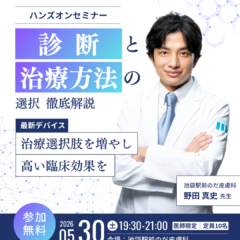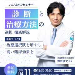 本セミナーでは、野田先生による診断の徹底解説に加え、Er:YAGレーザーを用いたデモンストレーションを実施いたします。